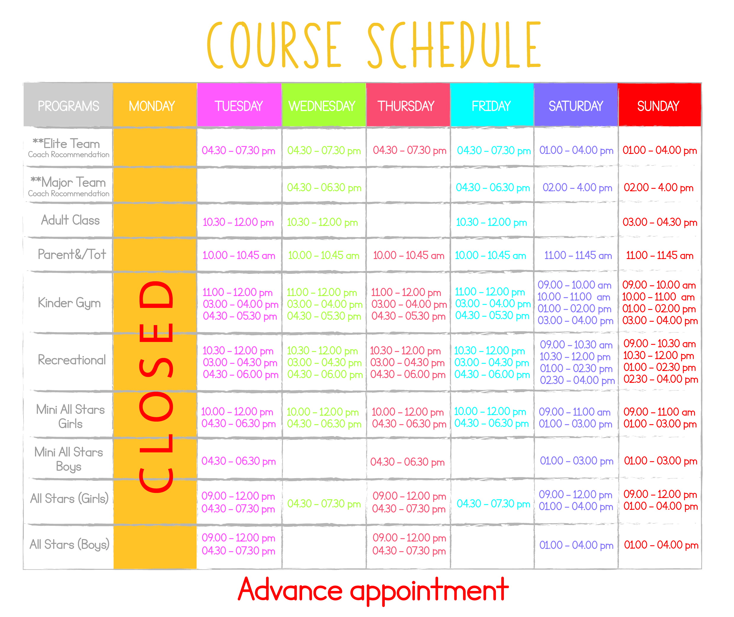 Our lessons are themed to make learning fun! Each lesson is geared toward specific progressions and skills. Participants will find their way through obstacle courses and circuits to help achieve the goals of the lesson. Our exciting, colorful, and stimulating equipment creates an enjoyable learning environment.