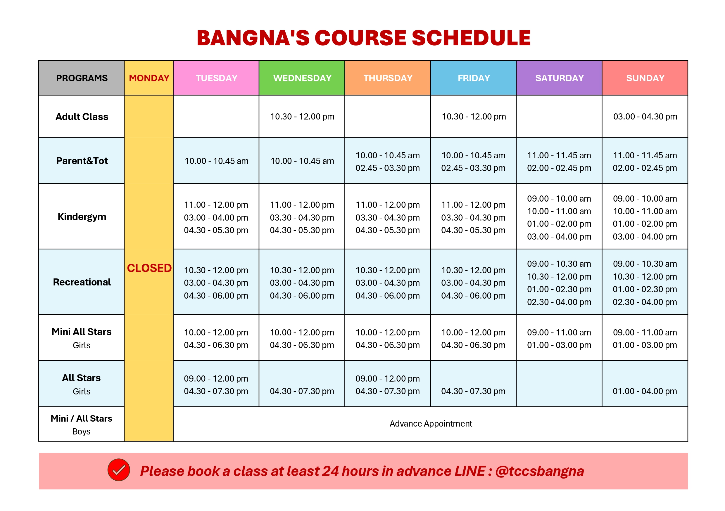 Schedule: Bangna Branch
